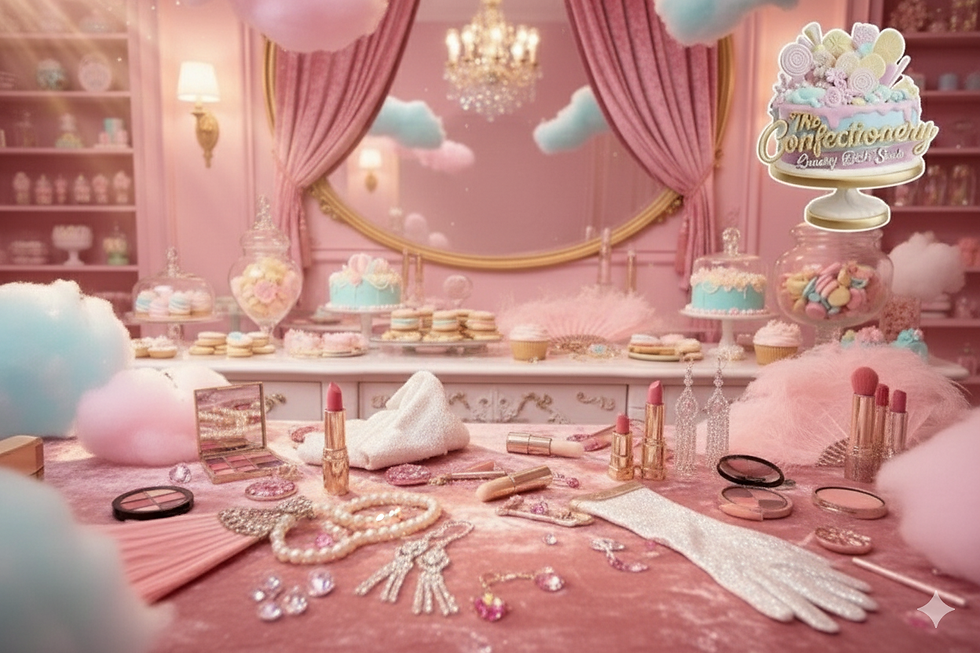 Our aesthetic is pure confectionary couture and vintage glamour, designed to bring a delightful dose of playful luxury to your home. At The Confectionery, we believe that bathing should be an act of pure, unparalleled pleasure, and that everyone deserves a little sparkle in their routine.